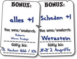 Mit den kostenlosen Bonustrackern behalten die Spieler immer den Überblick über alle auf sie gewirkten Boni, ohne die Ränder ihres Charakterbogens vollzukritzeln.