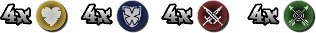Das Set Waffenkammer deckt den Bedarf an Markern der Hoffnung für alle Steigerungen der Klassen Hexenjäger, Schurke, Sölnder oder Wegelagerer bis in die zehnte Stufe und enthält jeweils 4 der folgenden Acryltoken in einer praktischen Aufbewahrungsbox aus Metall: